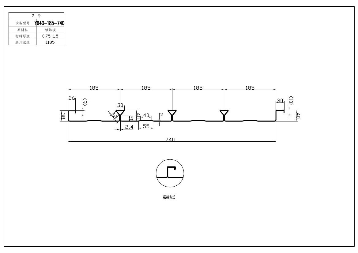 YX40-185-740閉口樓承板提供多種工作平臺,實現(xiàn)立體作業(yè),加快進度,縮短工期,降低綜合成本;強勁的混凝土握裹抗剪(特殊的閉口肋型和腹板上的嵌扣)。
